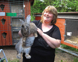 – Jag fick upp intresset för kaninavel 1996 och då åkte jag också runt på en del utställningar men den kanin jag hade köpt för detta ändamål motsvarade inte de krav som man har på utställningskaniner. Skam den som ger sig så hon köpte flera raskaniner och drog igång en avel, nu har hon närmare 70 av olika raser hemma på sin farm. – Det roligaste med kaninavel är att under vinterhalvåret sitta och planera sitt avelsarbete