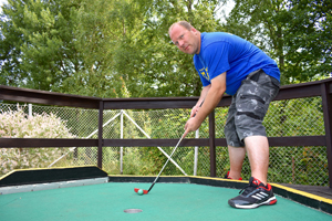 När BlekingePosten dyker upp vid bangolfbanorna i Olofström pågår SM-förberedelserna för fullt. Det handlar bland annat om att fixa till banorna och rensa bort ogräs.
