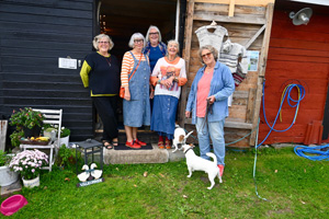 I sommar har kvinnorna hyrt in sig hos Eva Südow. I en av de gamla ladorna har de inrett en liten konst- och hantverksbod som redan blivit för liten.