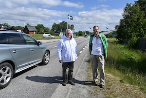 När de står i vägrenen på Sturkövägen susar det ena fordonet förbi efter det andra. Det är få som håller hastigheten.