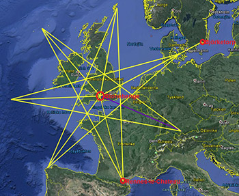Men inte nog med detta: I en tidigare artikel frågade jag mig vad Björketorpsmonumentet rimligen har att göra med da-Vinci-koden, då riktningarna mot Rennes-le-Château och Jerusalem från Björketorp sett bildar identiska vinklar mot nord-syd-linjen. Det visar sig nu att om man placerar en sju-uddig stjärna med centrum i Stonehenge och en udd pekande mot Björketorp, då pekar en annan udd i denna stjärna rakt mot samma punkt - nära Rennes-le-Château - som jag tidigare fann som "spegelpunkt" för Jerusalem i förhållande till Björketorp!